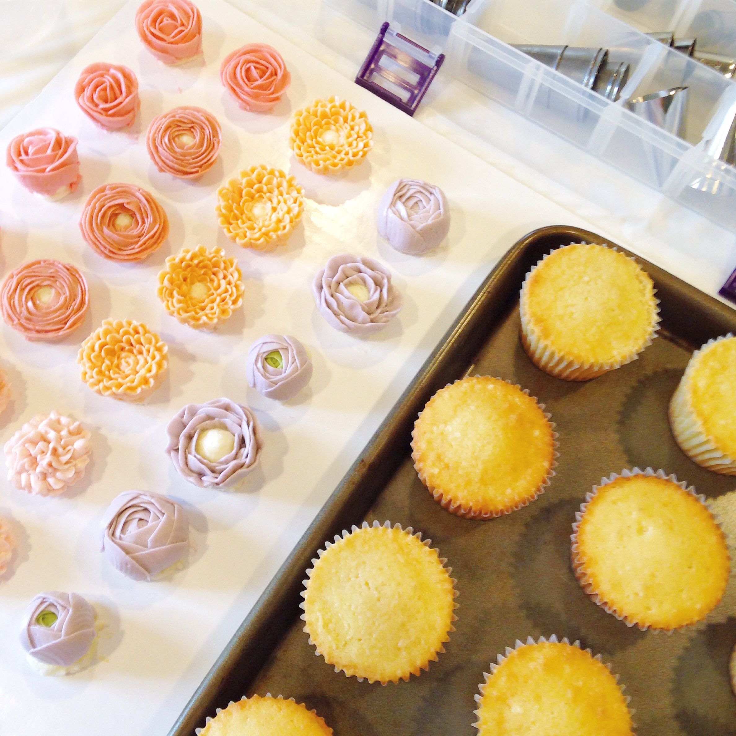 This weekend we held a Mother's Day floral cupcake class that was a complete blast! These ladies were so talented and each one was so unique in their color choices and piping styles. Everyone worked so hard and the results were just beautiful. Thanks again to all those who came out and I hope you enjoyed eating the beautiful fruits of your labor!